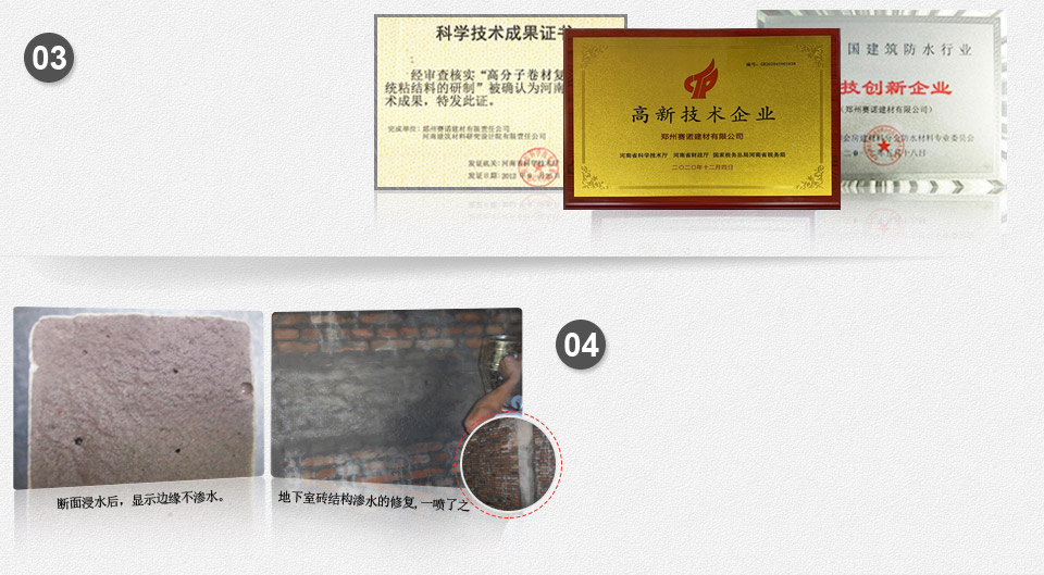 鄭州賽諾建材有限公司是由具有豐富大型項(xiàng)目工程服務(wù)背景的技術(shù)團(tuán)隊(duì)創(chuàng)建,是近年來(lái)建材領(lǐng)域迅速崛起的一支新軍。自成立之日起就一直致力于提供混凝土、磚石結(jié)構(gòu)建筑物的防水、防腐、滲水、滲漏檢測(cè)的咨詢、維護(hù)等一體化服務(wù),以其較高的性價(jià)比,創(chuàng)造性地解決了很多工程難題,受到工程界的普遍歡迎和好評(píng)。